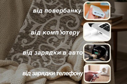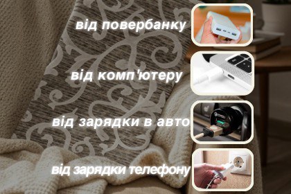 Підключіть грілку до ноутбука, повербанку або адаптера — і вже через 5 хвилин відчуйте приємне тепло.